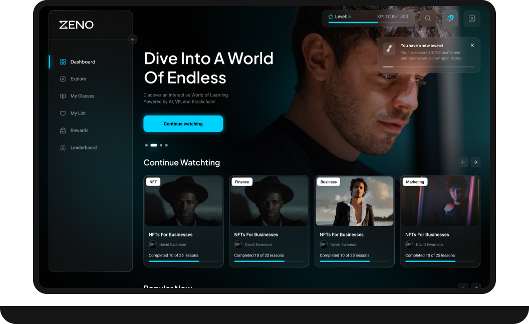 Earn rewards and $ZENO tokens while you learn. Redeem them for exclusive content, real-world events, and partner programs.